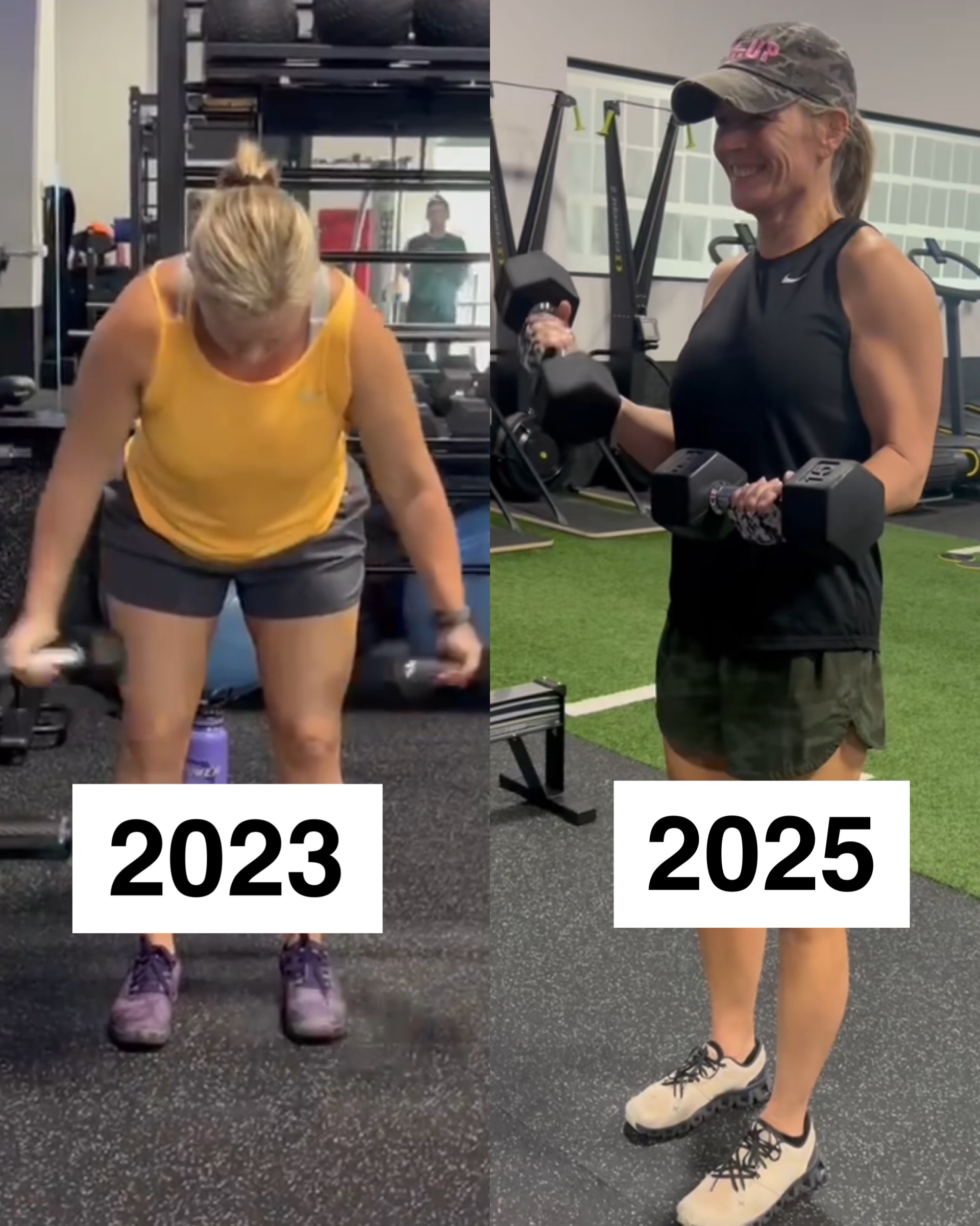 These pictures are two years (and about 15 pounds) apart. I went to LvlUp to add some strength training to my fitness routine. Within a few months, I became a full-time member and never looked back.